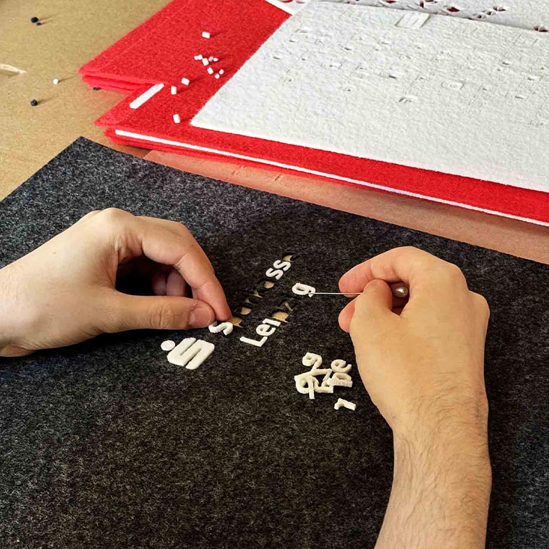 Wir fertigen unsere Produkte aus formstabilem und ultraleichtem veganen Filz an.