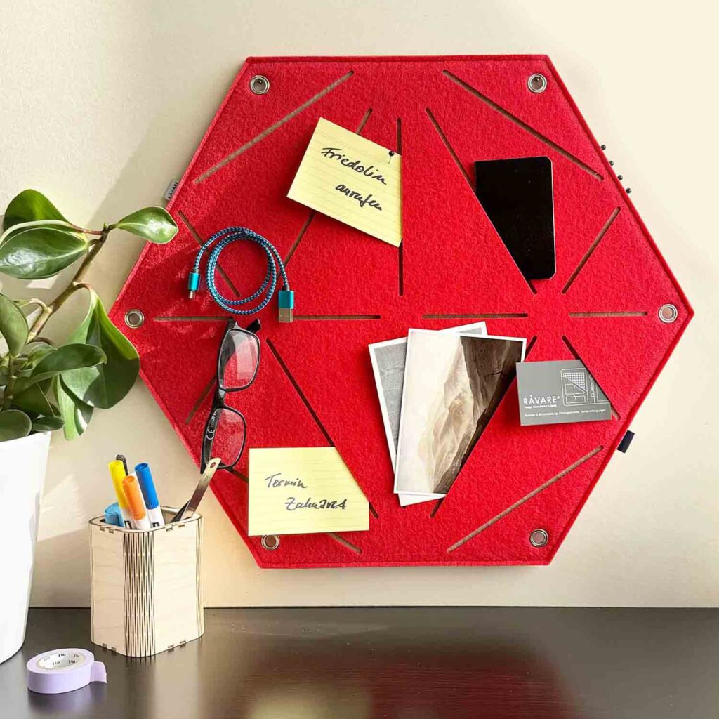 Pinnwände, Dokumentenmappen, Notebook-Hüllen uvm. aus veganem Filz.
