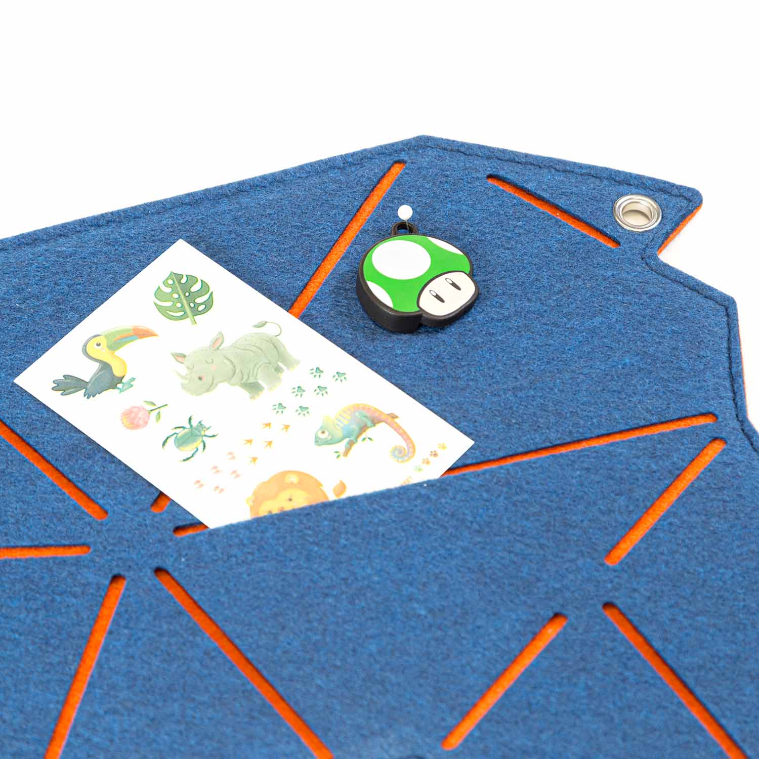 In die Schlitze lassen sich kleine Dinge wie Gutscheine, Einladungen oder Zettel einfach einschieben, während Nadeln zusätzlichen Halt für Kosmetikproben, Schultermine oder wichtige Wochen-ToDos geben.