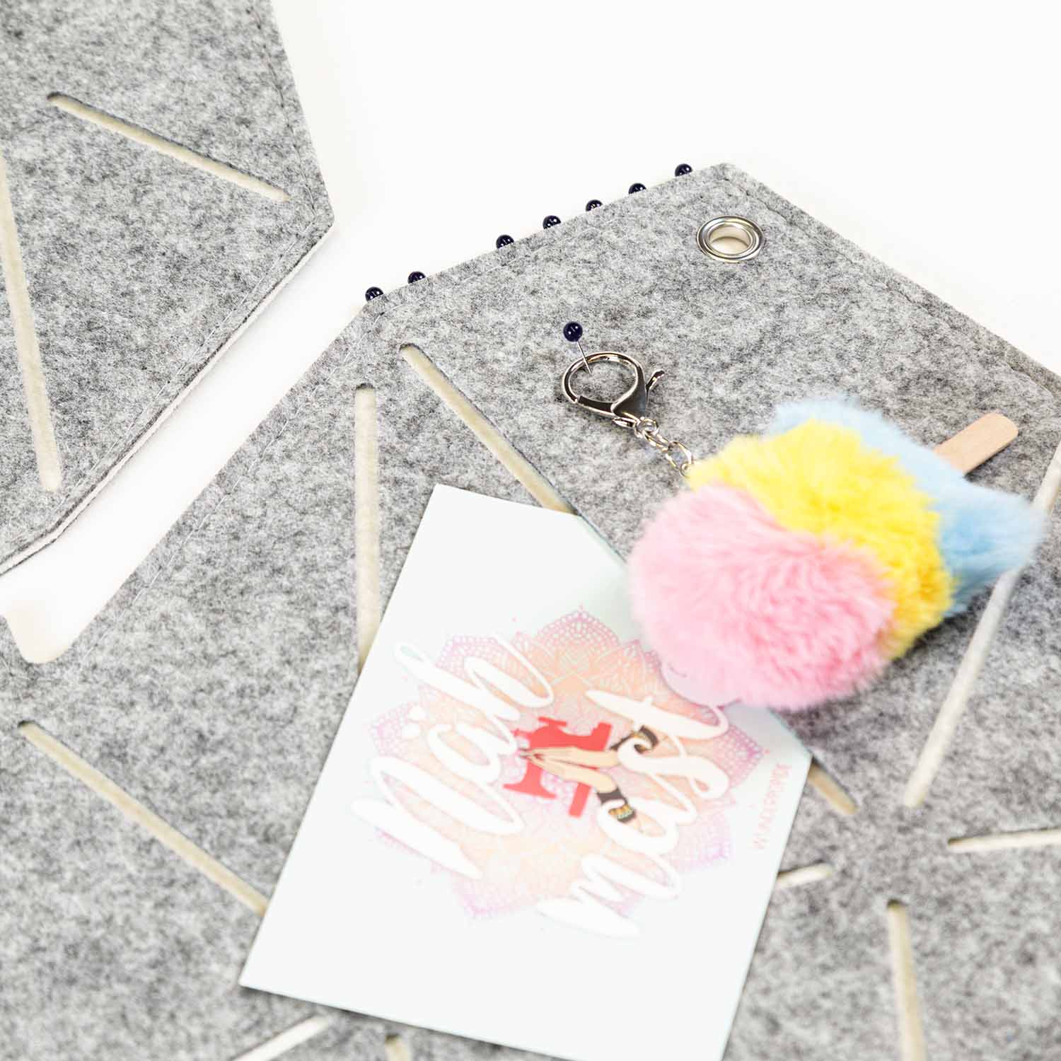 Das tierische Visionboard eignet sich außerdem hervorragend, um temporäre Gegenstände oder Dinge, die noch keinen festen Platz haben zu bündeln, wie z.B. Rabattcodes, Festivalbändchen, Schlüssel, Kosmetikproben, Schultermine oder wichtige Wochen-ToDos. Die Schlitze laden zum Einschieben ein und mit den Nadeln kannst du zusätzliche Zettelchen anpinnen.