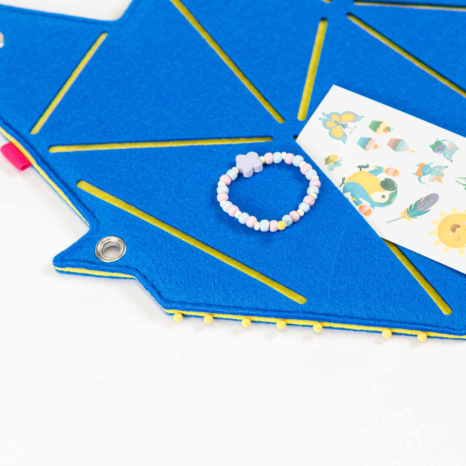 Das tierische Visionboard eignet sich außerdem hervorragend, um temporäre Gegenstände oder Dinge, die noch keinen festen Platz haben zu bündeln, wie z.B. Rabattcodes, Festivalbändchen, Schlüssel, Kosmetikproben, Schultermine oder wichtige Wochen-ToDos. Die Schlitze laden zum Einschieben ein und mit den Nadeln kannst du zusätzliche Zettelchen anpinnen.