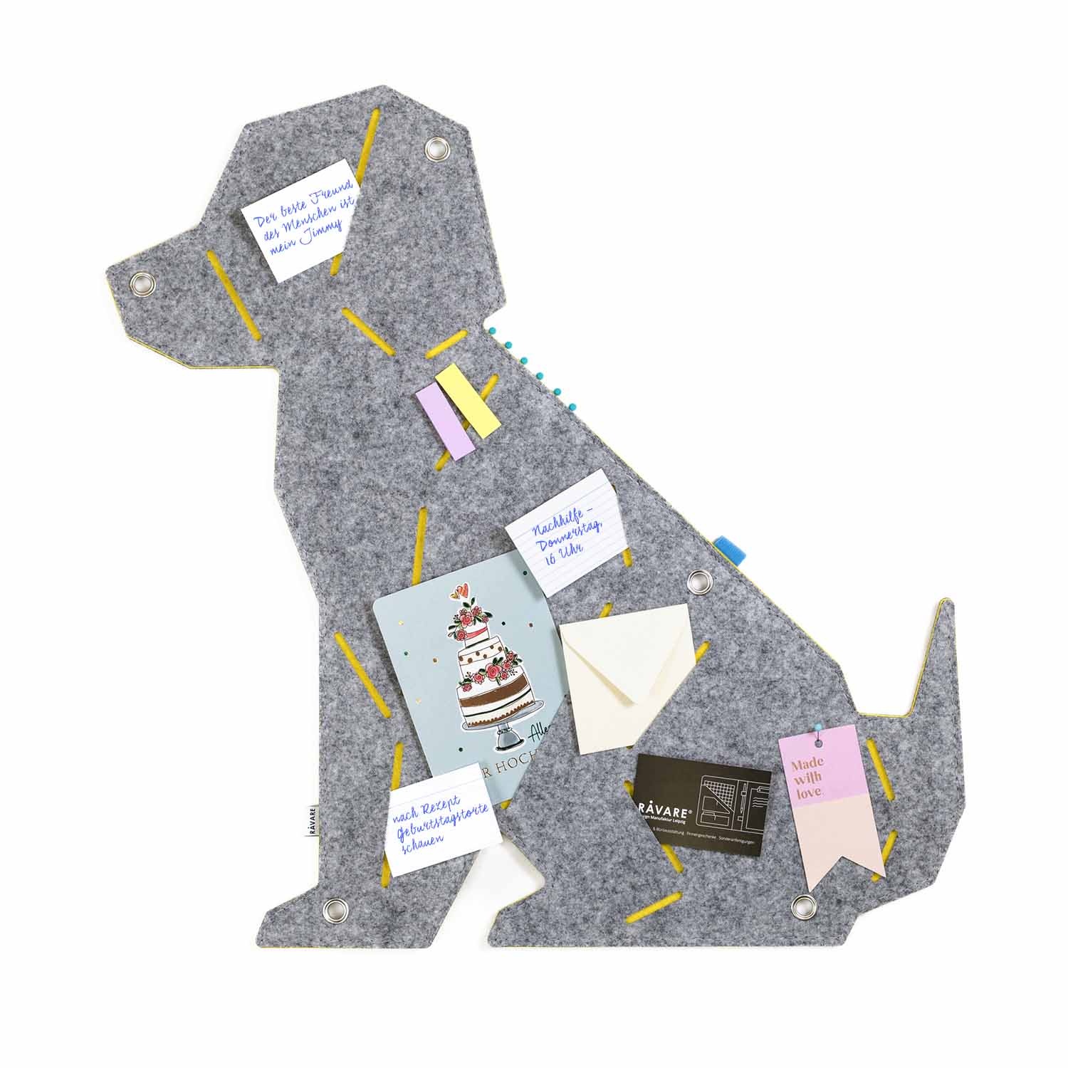 Pinnwand Hund „WUF“ hellgrau-gelb