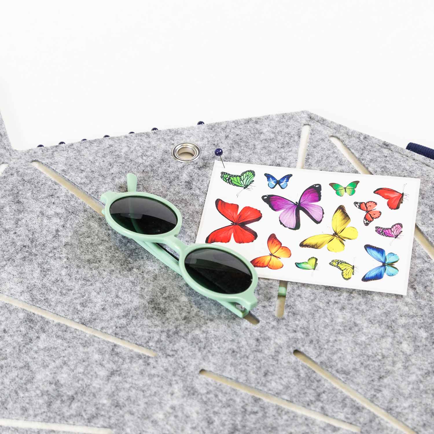 Das tierische Visionboard eignet sich außerdem hervorragend, um temporäre Gegenstände oder Dinge, die noch keinen festen Platz haben zu bündeln, wie z.B. Rabattcodes, Festivalbändchen, Schlüssel, Kosmetikproben, Schultermine oder wichtige Wochen-ToDos. Die Schlitze laden zum Einschieben ein und mit den Nadeln kannst du zusätzliche Zettelchen anpinnen.