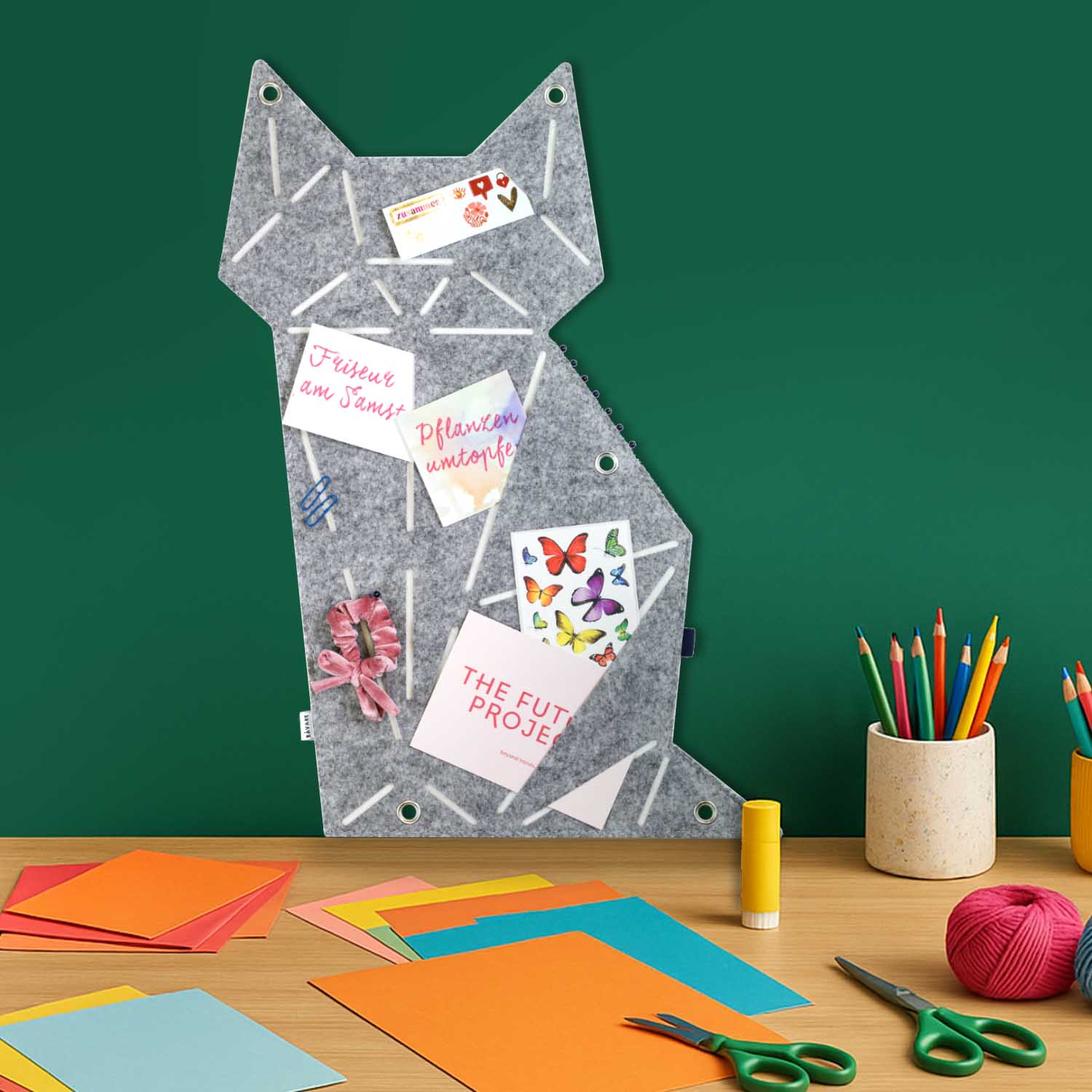Mit unserer katzenförmigen Tier-Pinnwand KAT kannst du deine wichtigen ToDos im Schulalltag organisieren: Termine für die Schule anpinnen, kleine Liebesbotschaften einschieben, nette Einladungen sichtbar feststecken uvm. Mit deinem Memoboard hast du so deine Postkarten, Notizen und Fotos immer sichtbar und griffbereit.