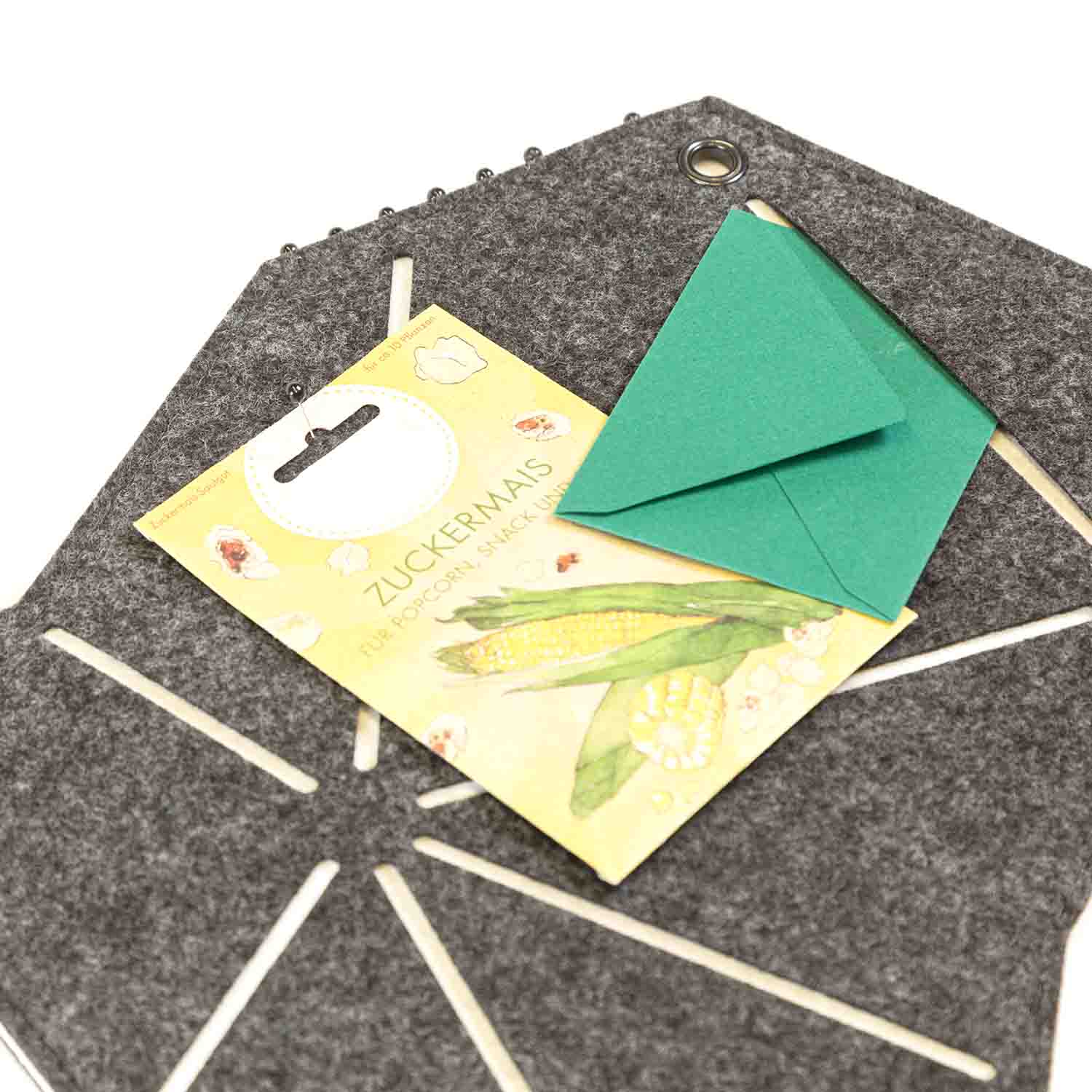 In die Schlitze lassen sich kleine Dinge wie Gutscheine, Einladungen oder Zettel einfach einschieben, während Nadeln zusätzlichen Halt für Kosmetikproben, Schultermine oder wichtige Wochen-ToDos geben.