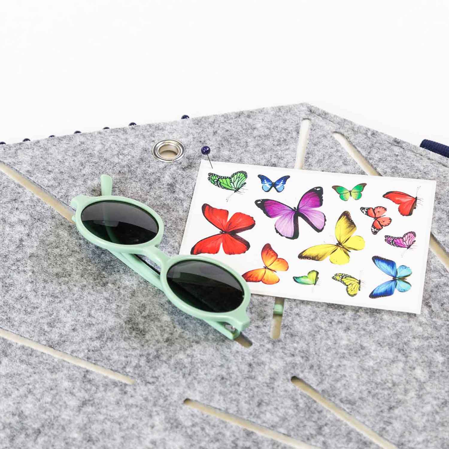 Das tierische Visionboard eignet sich außerdem hervorragend, um temporäre Gegenstände oder Dinge, die noch keinen festen Platz haben zu bündeln, wie z.B. Rabattcodes, Festivalbändchen, Schlüssel, Kosmetikproben, Schultermine oder wichtige Wochen-ToDos. Die Schlitze laden zum Einschieben ein und mit den Nadeln kannst du zusätzliche Zettelchen anpinnen.