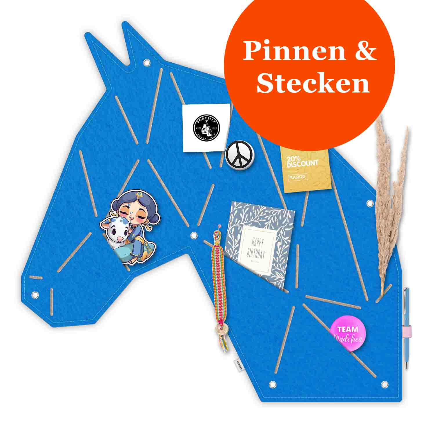 Pferde-Pinnwand für Kinderzimmer, Memoboard zum Stecken und Pinnen aus Filz