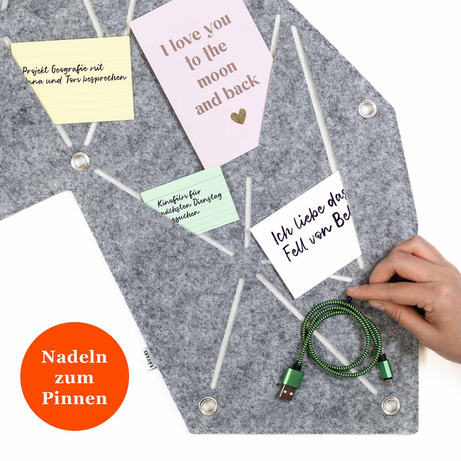 Durch die Kombination aus Pinnen und Stecken organisierst du alles sichtbar und schonend. Unsere vielen Formen verleihen jedem Raum eine stilvolle oder verspielte Atmosphäre.