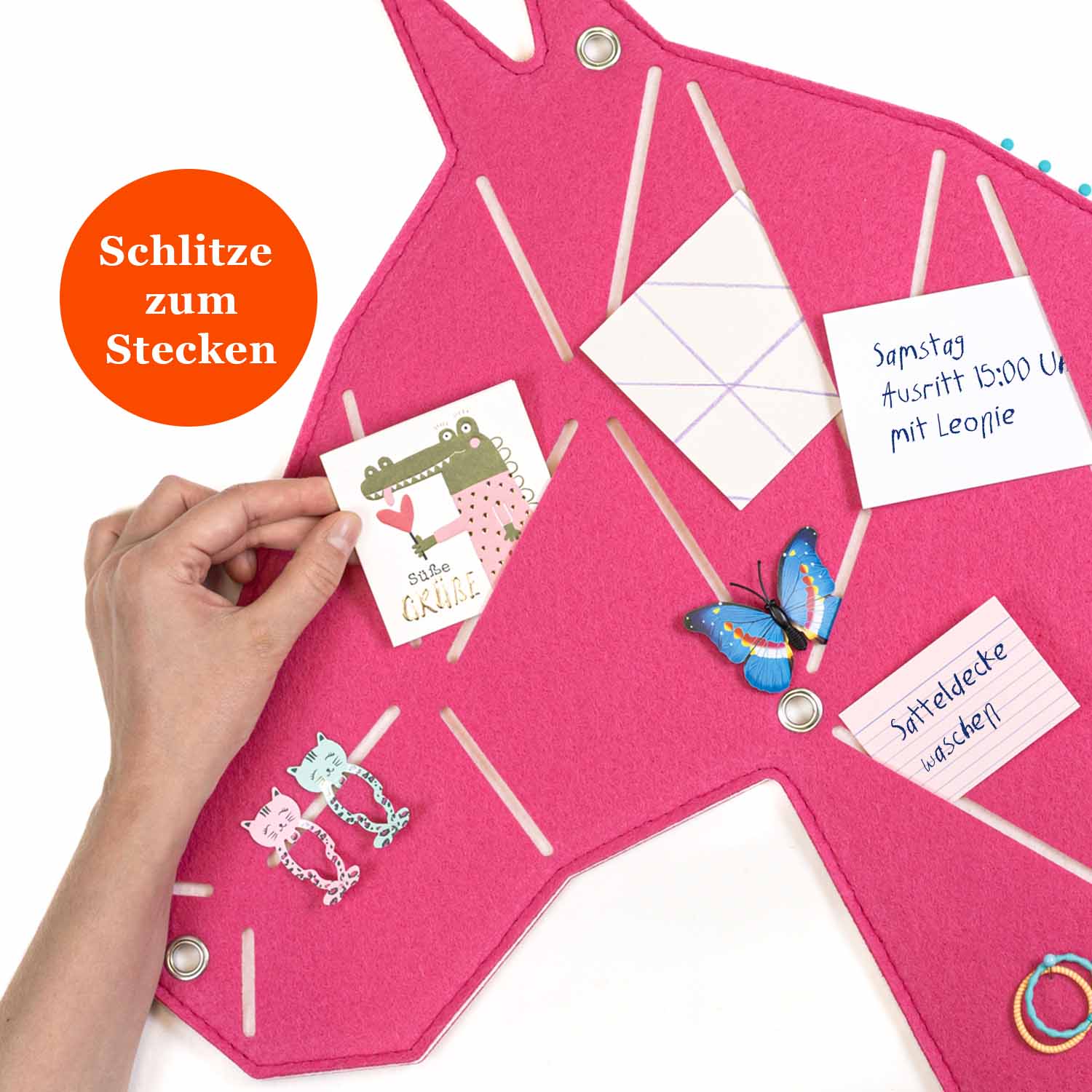 Mit unserer pferdeförmigen Tier-Pinnwand PON kannst du deine wichtigen ToDos im Schulalltag organisieren: Termine für die Schule anpinnen, kleine Liebesbotschaften einschieben, nette Einladungen sichtbar feststecken uvm. Mit deinem Memoboard hast du so deine Postkarten, Notizen und Fotos immer sichtbar und griffbereit.