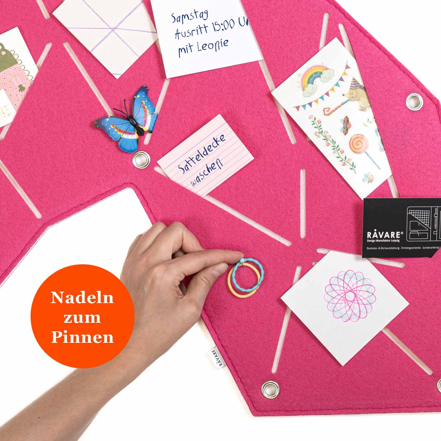 Unsere Pinnwände vereinen cleveres Anpinnen und praktisches Einschieben, sodass deine Notizen, Fotos und Karten immer sichtbar bleiben.